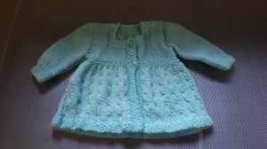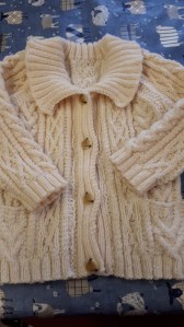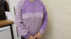 Very cleverly, May used two different colours in the jumper to disguise the fact that she didn’t have enough of either colour to make a full adult garment.