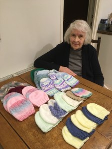 Sheila, with some of the hats she’s knitted during the year. She says she’s knitted 32 hats but I think it’s way more than that.